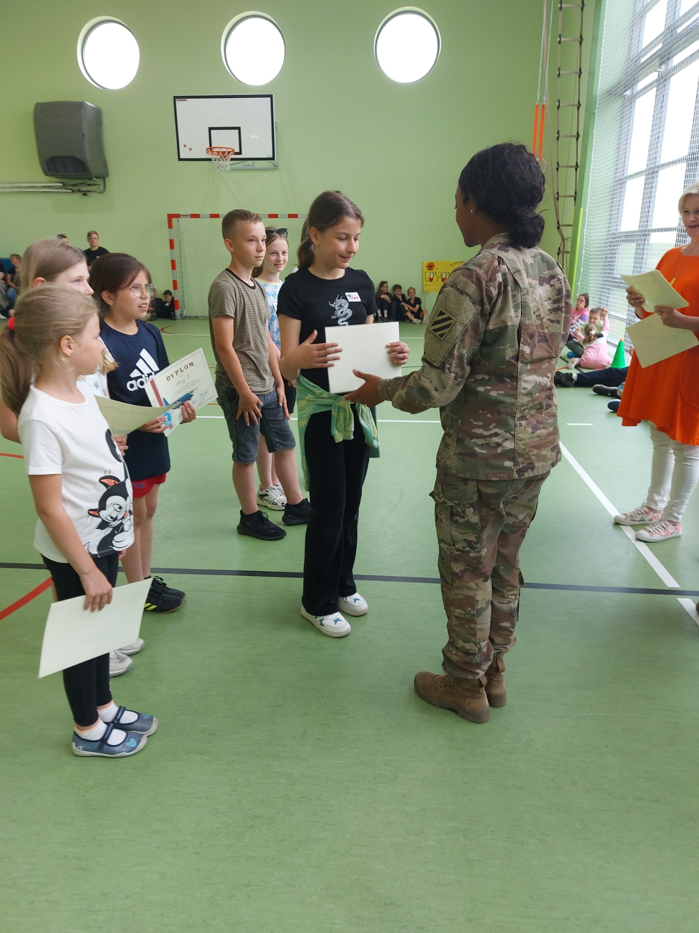 W piątek 2 czerwca 2023 w naszej szkole obchodziliśmy Dzień Dziecka. Specjalnymi gośćmi w tym dniu byli amerykańscy żołnierze z 33 Bazy Lotniczej w Powidzu. Nasi goście obejrzeli najpierw występy uczniów w języku angielskim, następnie wspólnie z nimi brali udział w warsztatach kulinarnych, zajęciach sportowych oraz rozmówkach po angielsku❤️👍🇺🇲🇵🇱